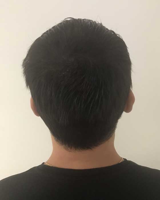 J’ai effectué un tatouage capillaire pour un effet crâne rasé il y a plus de six mois. Il m’a fallu trois séances pour arriver à un rendu magnifique et naturel.